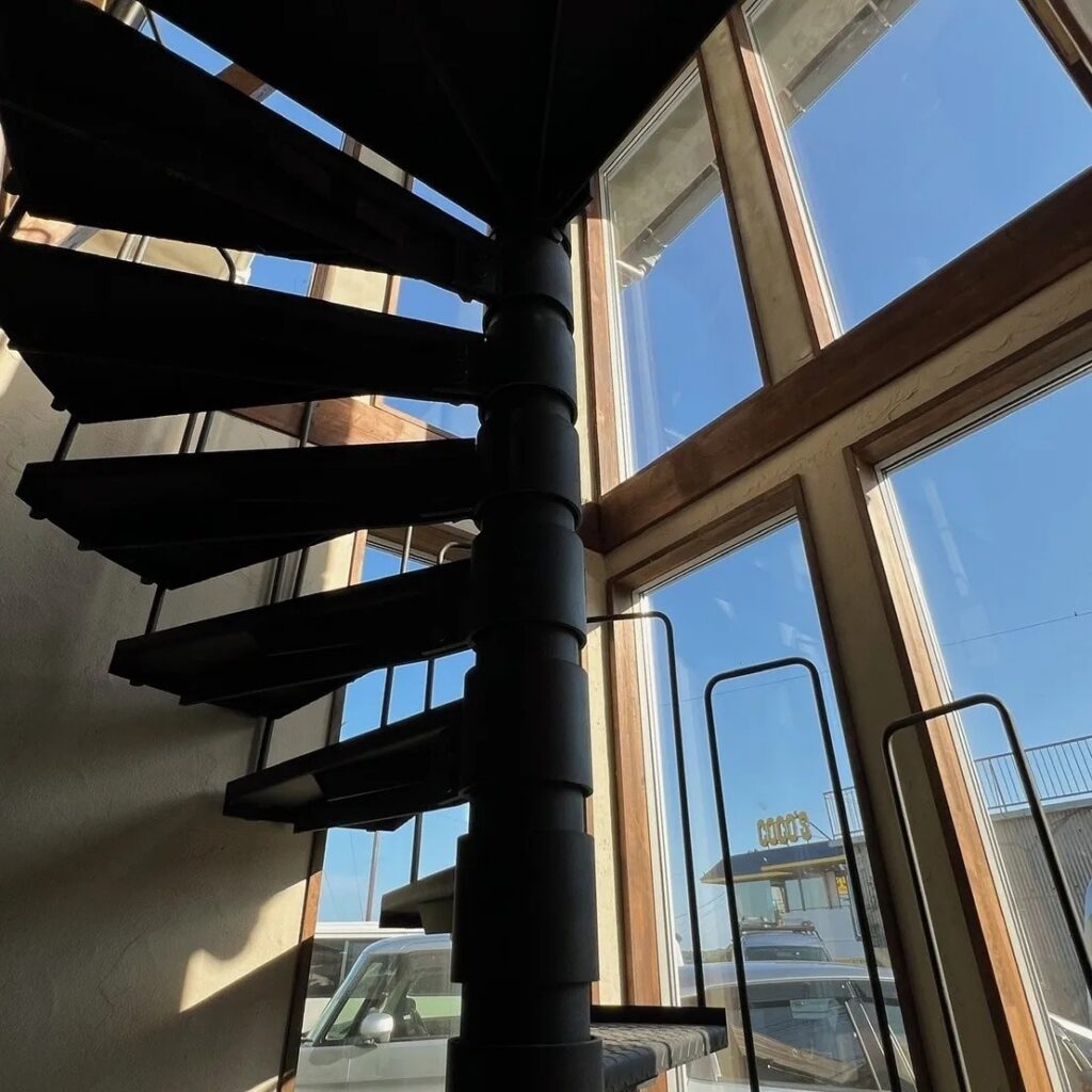 店内には黒鉄の螺旋階段を設置。