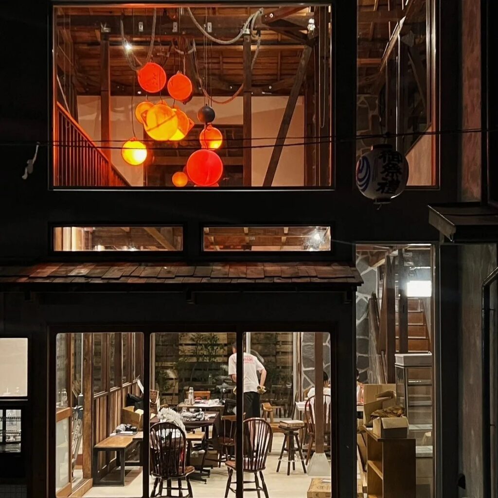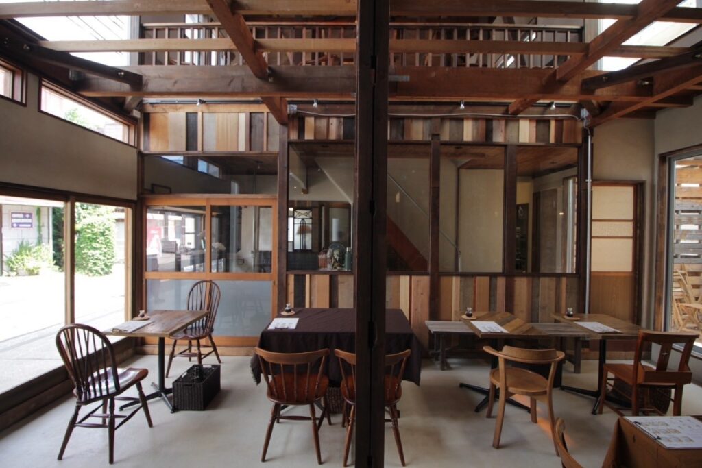 カウンターや壁には古材を再利用し、使い込まれた木の風合いを活かした仕上げに。